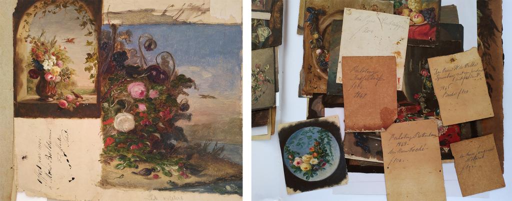 The RKD recently acquired the archive of artist Francina Louise Schot (1816-1894). Schot specialised in paintings depicting nature and flowers. Her archive came to the RKD together with the studio cabinet in which it was kept. Besides personal documentation, it contains Schot's painting materials, a velvet bag and a large number of beautiful drawings, oil sketches and watercolours.