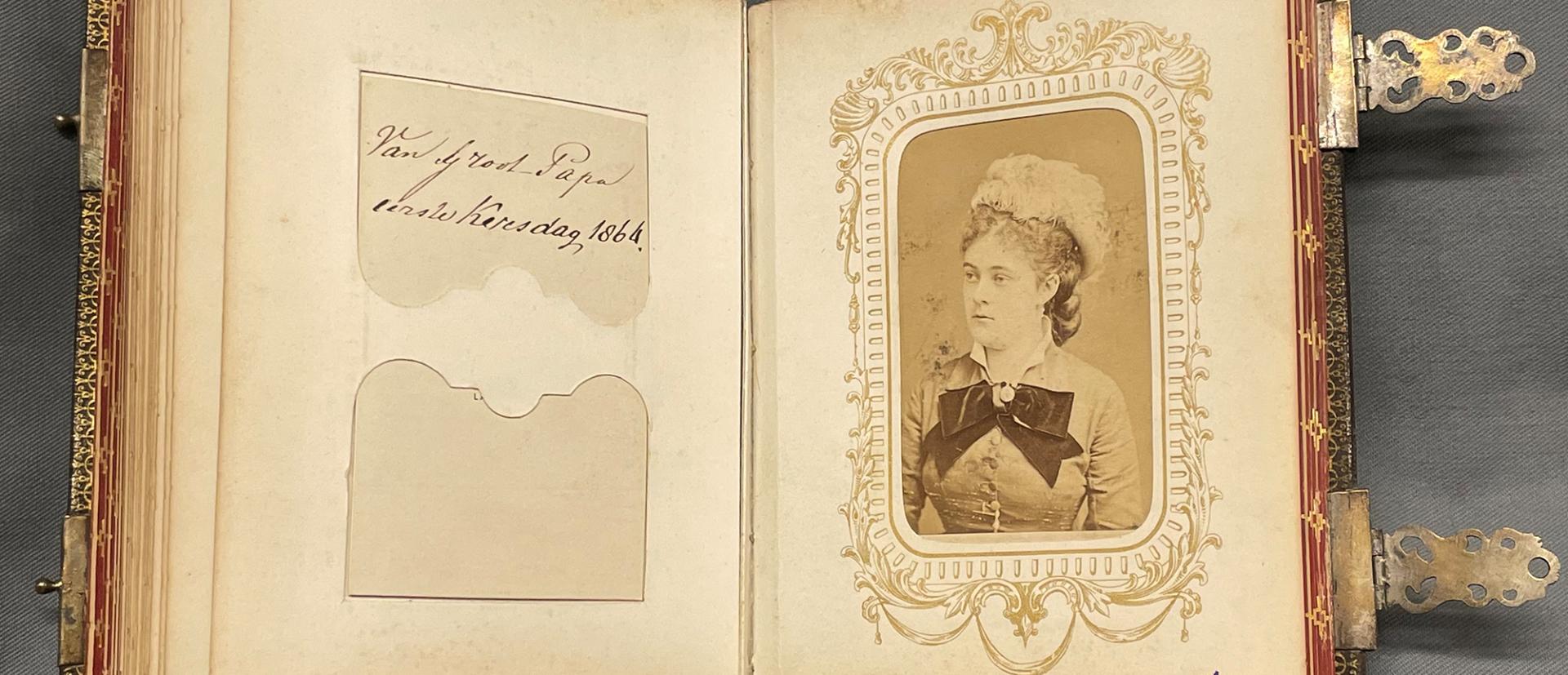 The Groeninx van Zoelen-van de Poll couple had an extensive family, whose members held important positions at court – functions which were passed on to the next generation. Agneta's grandmother Deutz van Assendelft-Rendorp and her aunt Deutz van Assendelft-van Lennep were senior lady-in-waiting to Queen Sophie and dame-du-palais to Queen Emma respectively. Frédéric's mother, Aurelia Elisabeth Countess of Limburg Stirum, was dame-du-palais to Queen Sophie. That is why the portraits in the albums show a great many representatives of the royal household from the second half of the nineteenth century. The earliest albums contain a veritable collection of family members, acquaintances and 'colleagues' – which in the Groeninx van Zoelen family more or less amounted to the same thing. Albums that were typical for men, with portraits of professors and fellow-students, or albums received in the wake of social functions, no doubt existed as well but are not represented in this collection.