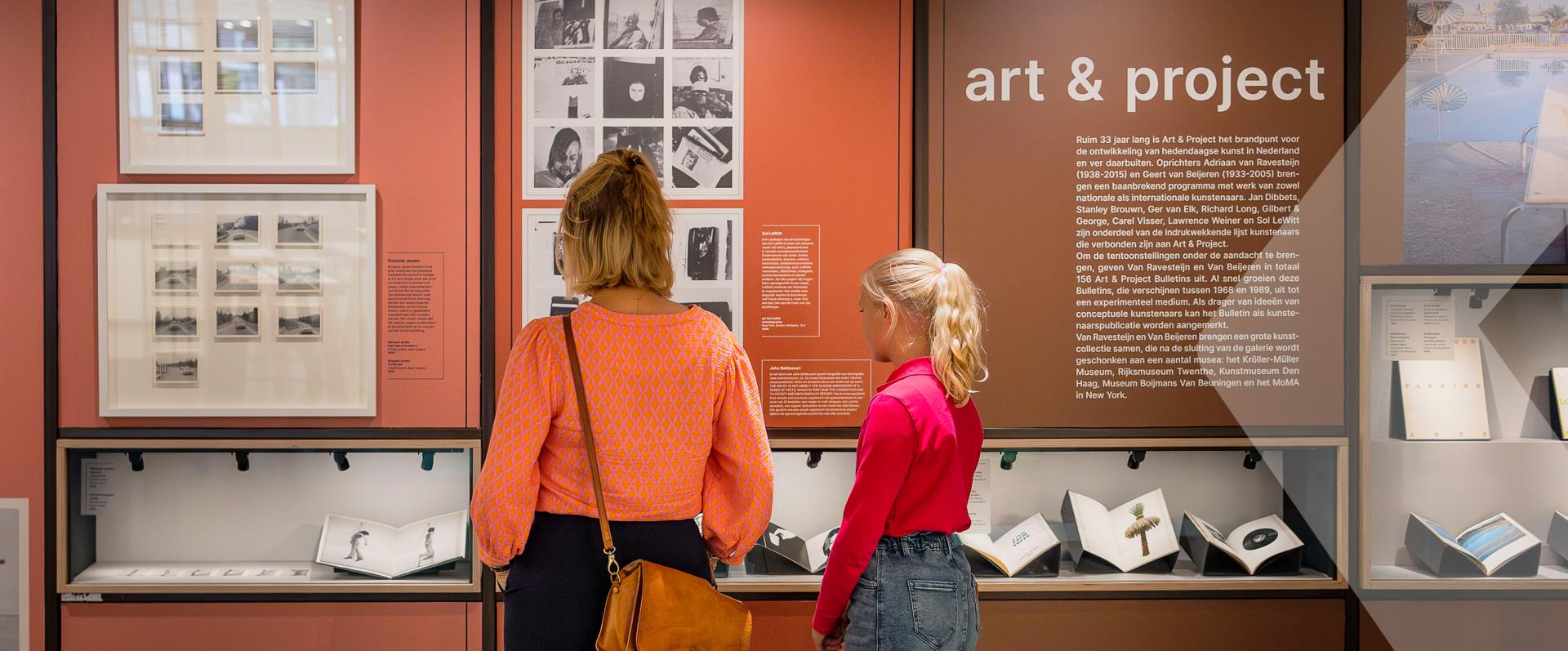 Twee kunstgeschiedenisstudenten analyseren samen een afbeelding aan een tafel vol boeken, prints en onderzoeksdocumenten op het rkd -  nederlands instituut voor kunstgeschiedenis.
