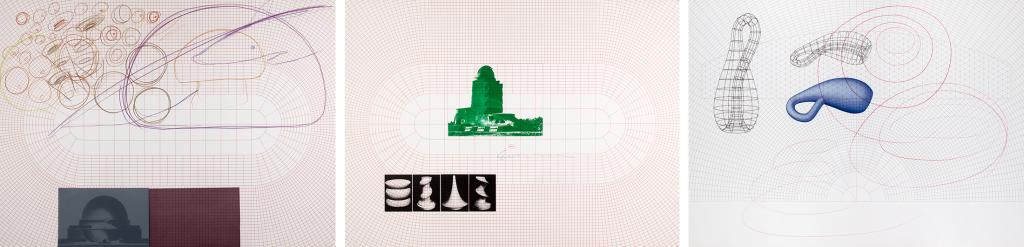 Een selectie grote vellen in het archief betreft exemplaren of proeven uit de reeks Graphics on grids uit 1988-1989. Daarin combineerde hij tekeningen op offsetrasterdrukken die hij maakte in de jaren zeventig met foto’s die verraden wat zijn bronnen waren en welke invloed deze hadden op zijn ontwikkeling. Verleden, heden en toekomstvisioenen vallen zo in één beeld samen. De reeks toont hoe hij in 1978 verwant was aan abstracte kunstenaars als Peter Struycken, Ad Dekkers, André Volten en Bob Bonies, die eind jaren zestig, begin zeventig een belangrijke rol in de Nederlandse kunst vervulden met een werkgebied tussen de beeldende kunst en architectuur in. Eikelenboom benadrukte in 2013 zijn sociale motivatie, die hem zou onderscheiden van meer individuele kunstenaars: ‘Een goed gebouw zien herinnert je eraan dat een menselijk bestaan mogelijk is in weerwil van alles wat dat bestaan degradeert. Het houdt je op de been.’