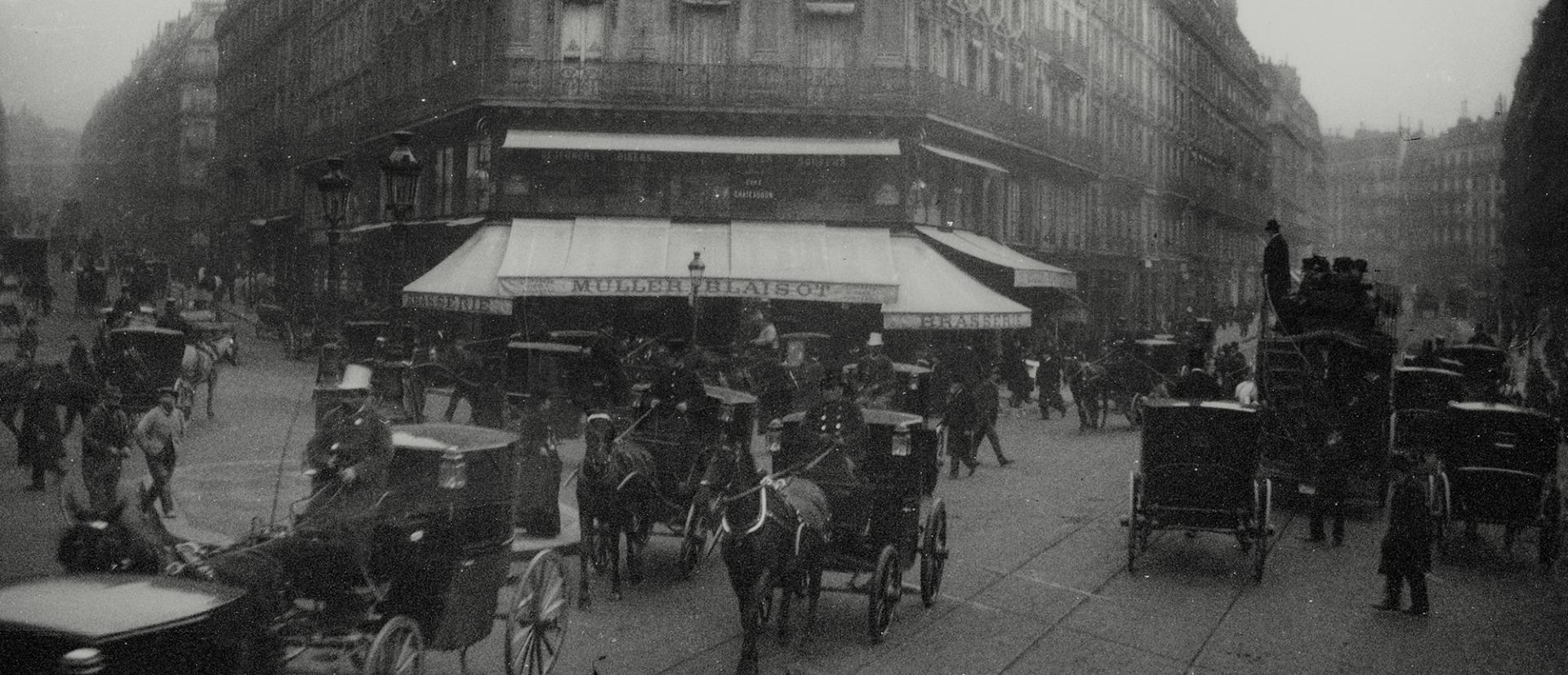 Bovenaan pagina: George Hendrik Breitner, Paardenkoetsen te Parijs, circa 1900, collectie RKD